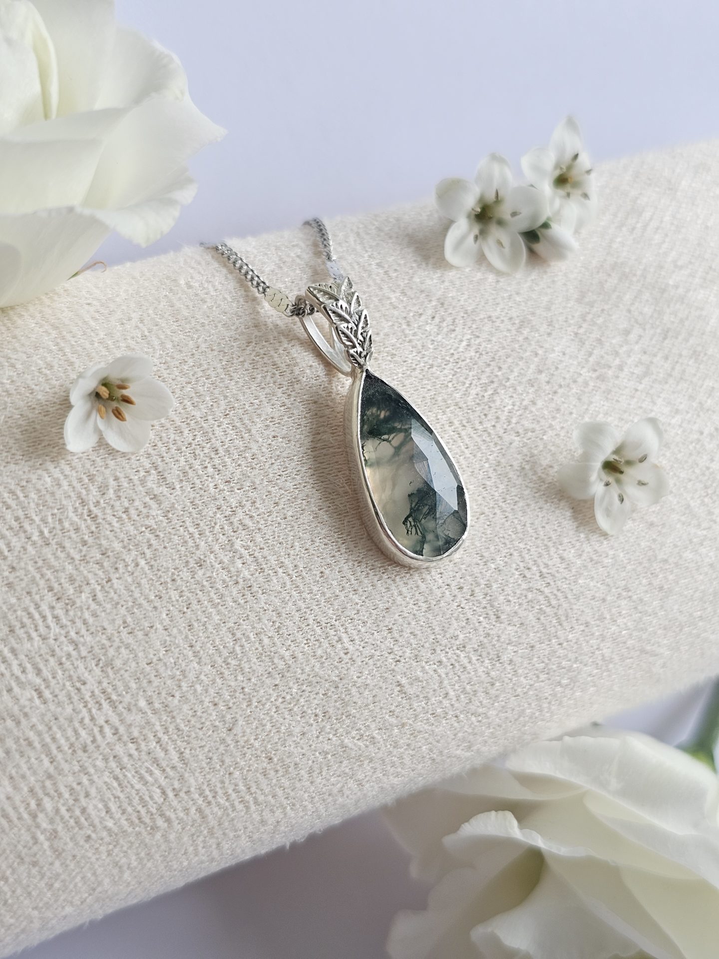 Agate mousse facettée, sertie en Argent 925